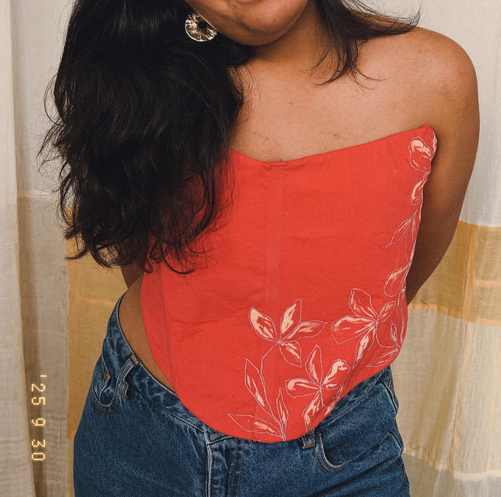 These reversible corsets take JOD’s idea of reimagining flawed fabrics into something bold and beautiful. Hand-painted, embroidered, or finished with patched florals, they bring art and comfort together in one striking piece. Trendy enough for a night out, yet easy and breathable for all day wear.