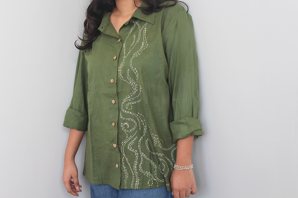 Handcrafted from repurposed fabrics, our shirts feature hand-painted details, intricate embroidery, and applique work. Each piece is a unique blend of artistry and sustainability, turning imperfections into design elements…